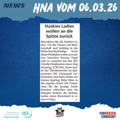 SAVE THE DATE! Am 15.03.2026 um 17:30 Uhr steht das große SAISONFINALE der Huskies-Ladies in […]